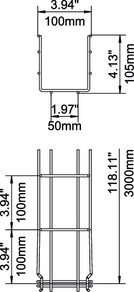 No additional connection components are required for the mesh cable tray, it is simply interlocked. The grid width is 50 x 100 mm.