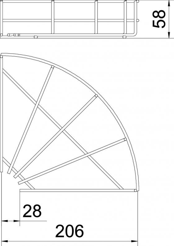 90° bend, horizontal, for all mesh cable trays of 55 mm side height.