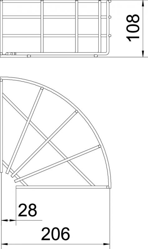 90° bend, horizontal, for all mesh cable trays of 105 mm side height.