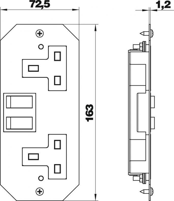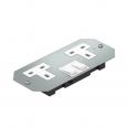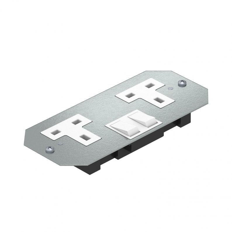 Cover plate with a switched double socket for installation in mounting supports beneath GES service outlets and cassettes.