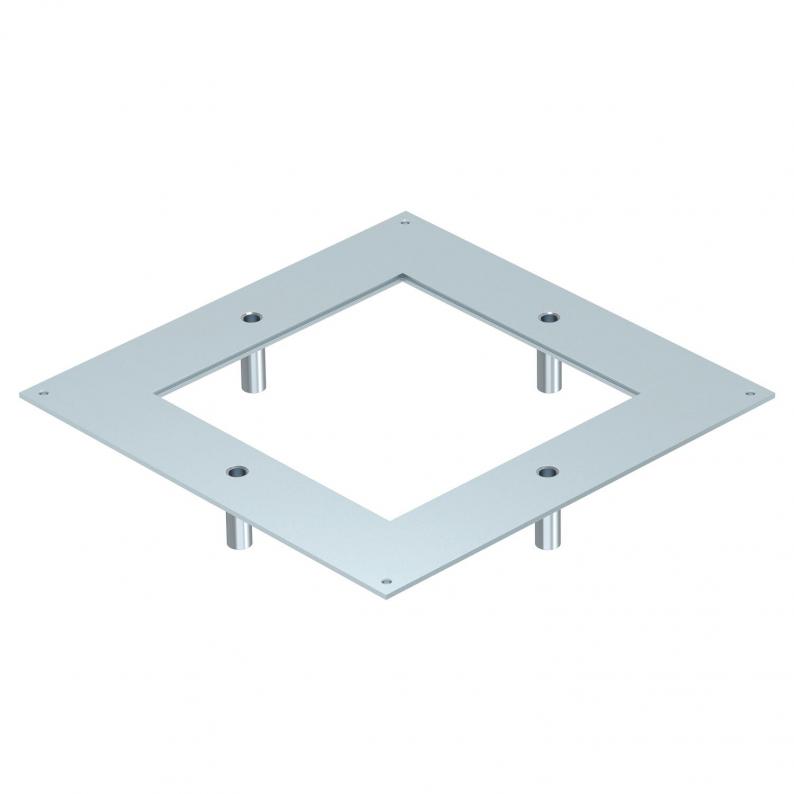 The heavy-duty mounting lid for the type UZD350 underfloor box is suitable for installation in a square heavy-duty cassette of nominal size 9. The installation opening is recessed by 3 mm and can be closed subsequently by a lid blanking plate.