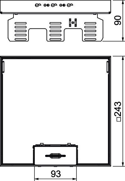 Height-adjustable cassette, decoupled from the floor, of nominal size 9, with cord outlet, for the installation of accessories in dry-cleaned floors for indoor use, for mounting in underfloor boxes UZD250 or UZD350, either in conjunction with a blanking lid DUG../9 or in UGD250-3/9 or UGD350-3/9. Mounting takes place using levelling profiles (order separately) in the aluminium frame profile of the underfloor boxes.