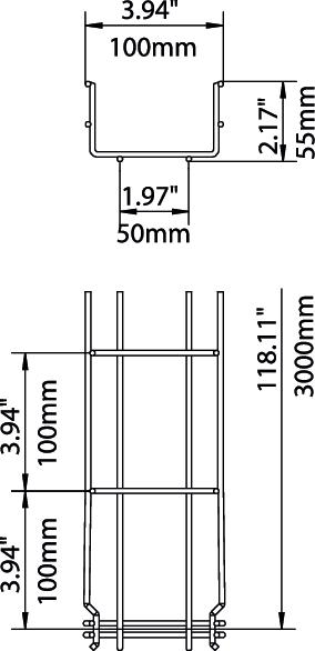 No additional connection components are required for the mesh cable tray, it is simply interlocked. The grid width is 50 x 100 mm (exception: GRM 55/50 = 20 x 100 mm).