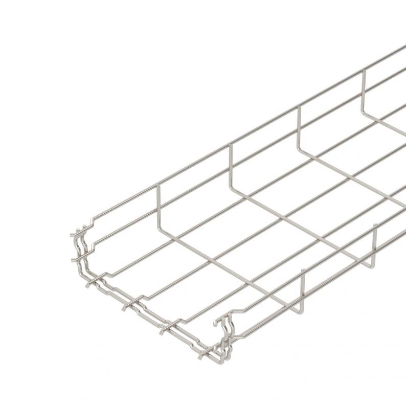 No additional connection components are required for the mesh cable tray, it is simply interlocked. The grid width is 50 x 100 mm (exception: GRM 55/50 = 20 x 100 mm).