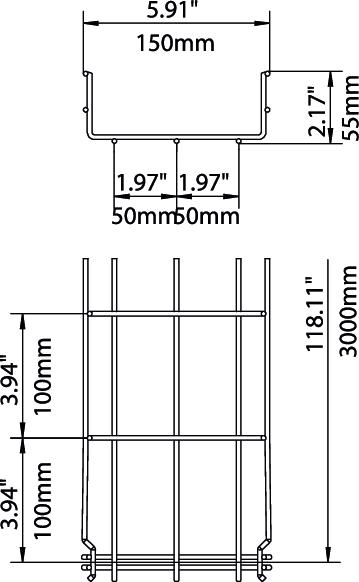 No additional connection components are required for the mesh cable tray, it is simply interlocked. The grid width is 50 x 100 mm (exception: GRM 55/50 = 20 x 100 mm). Tested for the maintenance of electrical function according to DIN 4102 Part 12 (type: GRM 55 200 4.8 G, GRM 55 300 G, GRM 55 400 G, mounting work and parameters according to valid test certificate).