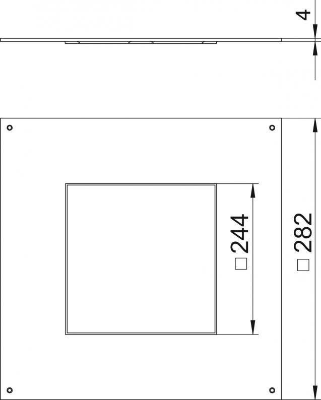 Mounting lid for underfloor junction and branch box of type UZD250-3/4 for the installation of an installation unit of nominal size 9. Installation opening 3 mm recessed for later blanking lock with lid blind plate.