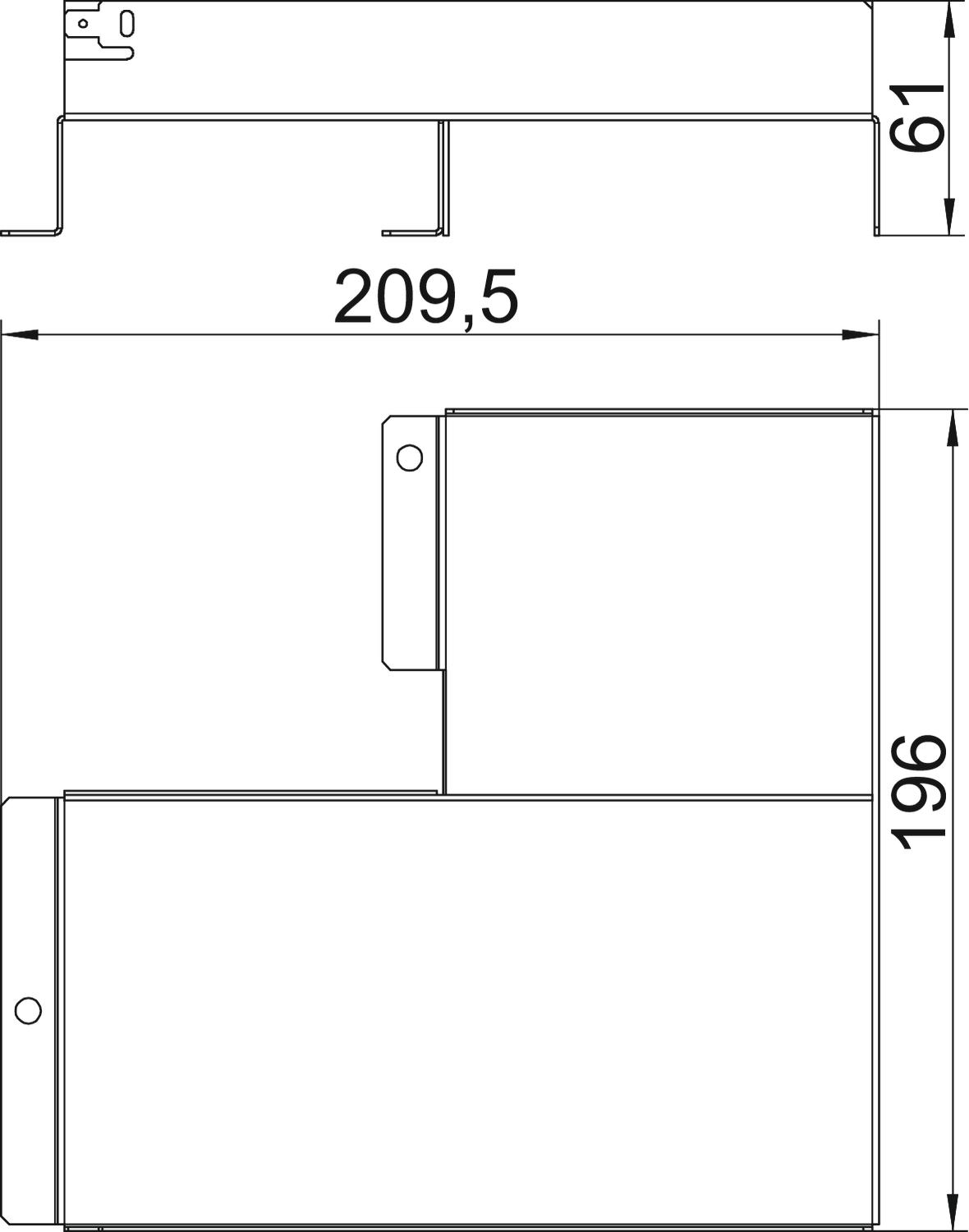 Separating element for a three-compartment T branch in an OKA-T flushfloor trunking system for branching trunking of width 300 mm.