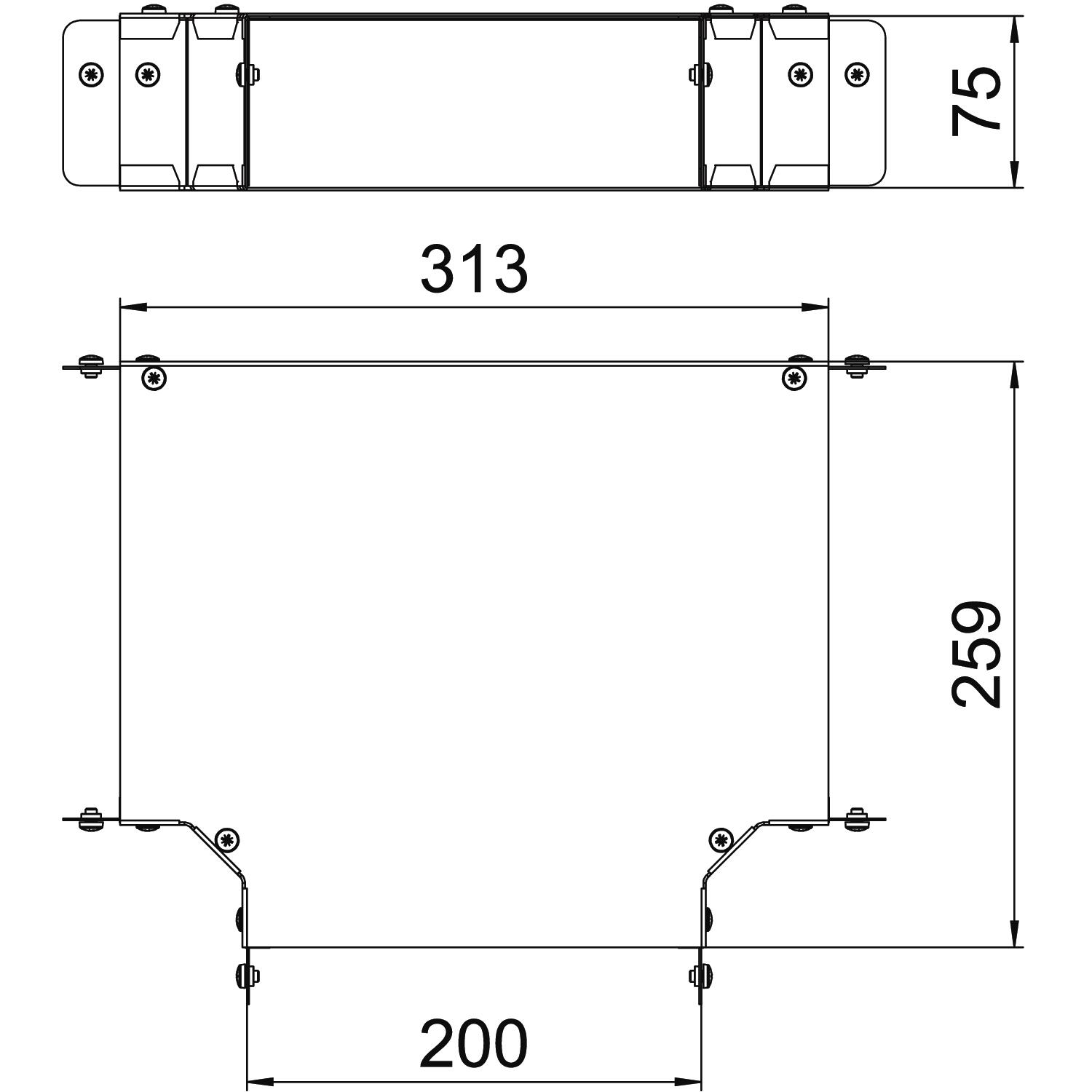Single Compartment Tee Top Cover, Pre-Galvanised Steel to suit Cable Trunking 200mm x 75mm