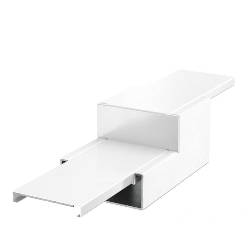 Reducer with intumescent fire protection mesh for symmetrical reduction of straight duct sections from PLM D 0810 to PLM D 0410. Suitable for direct wall and ceiling mounting, mounting below system floors and on support systems. Tool-free joint mounting with PLM SI joint connector. The cover is snapped on without tools, allowing rapid inspection and retroassignment. The cover overhang allows offset cover mounting for continuous equipotential bonding of the entire duct section.