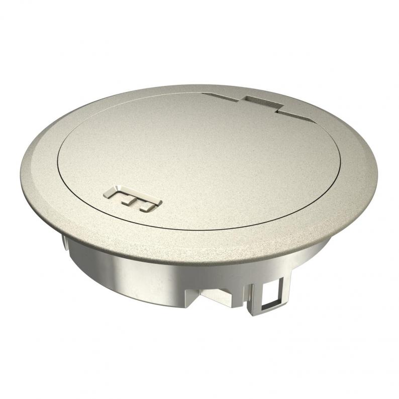 Service outlet with hinged cover and locking slider for GES R2 floor socket for direct installation in the MT R2 installation socket.