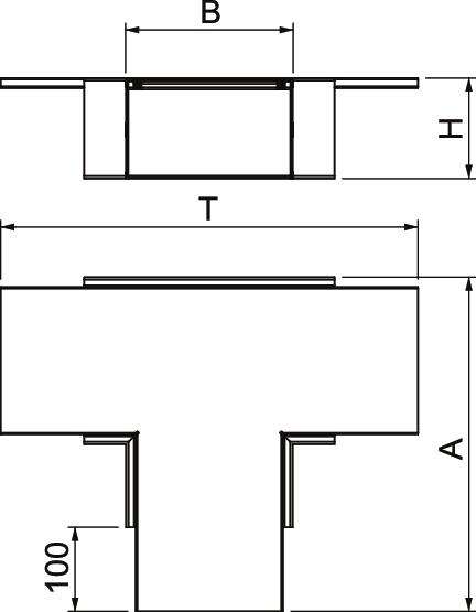 T branch piece, duct height 120 mm, FS