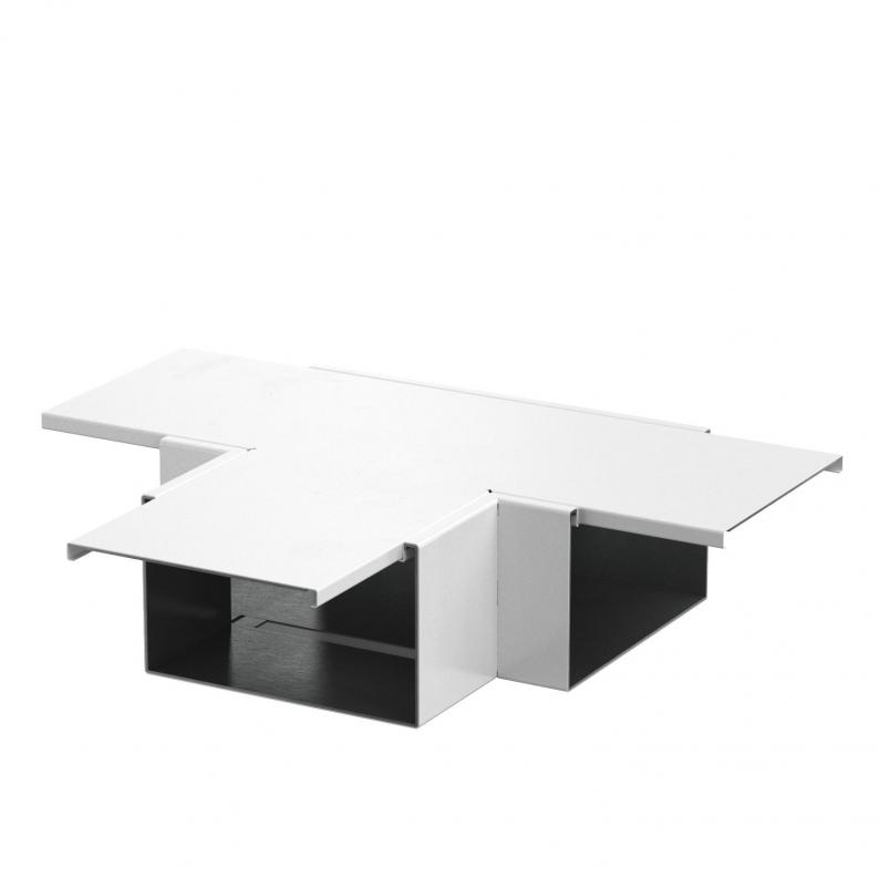Tee with intumescent fire protection mesh for PYROLINE® Rapid PLM installation duct. Suitable for direct wall and ceiling mounting, mounting below system floors and on support systems. Tool-free joint mounting with PLM SI joint connector. The cover is snapped on without tools, allowing rapid inspection and retroassignment. The cover overhang allows offset cover mounting for continuous equipotential bonding of the entire duct section.