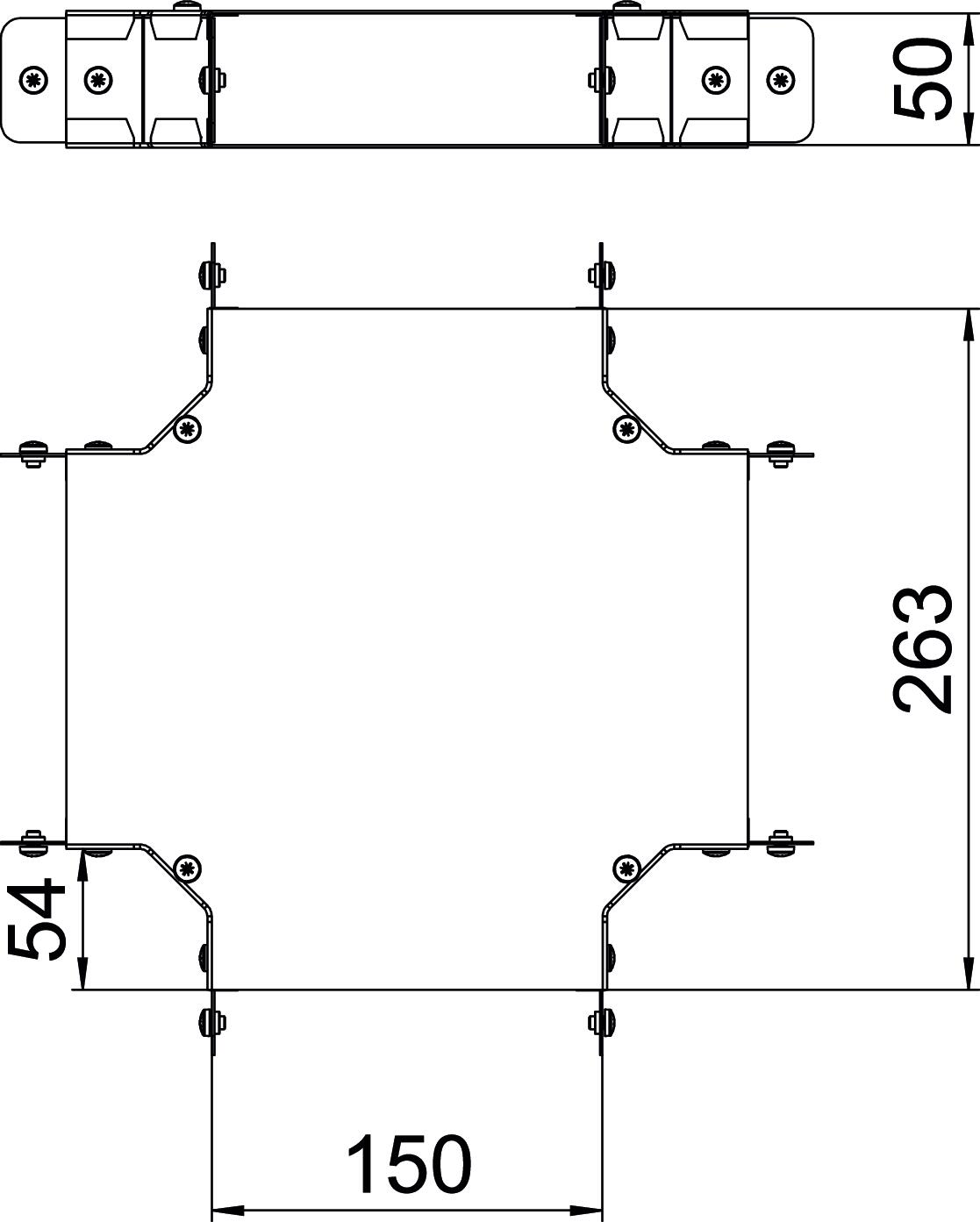 Single Compartment 4 Way Intersection, Pre-Galvanised Steel to suit Cable Trunking 150mm x 50mm