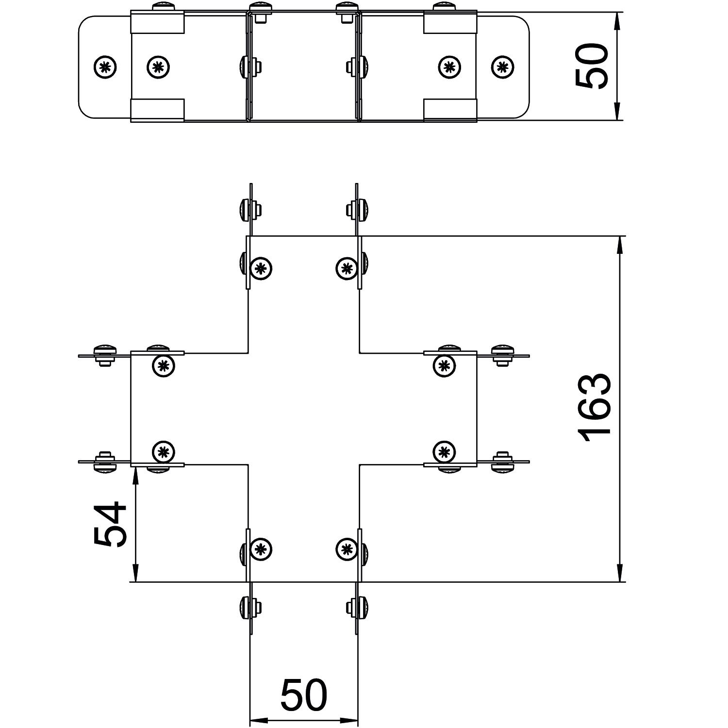 Single Compartment 4 Way Intersection, Non Gusset, Pre-Galvanised Steel to suit Cable Trunking 50mm x 50mm