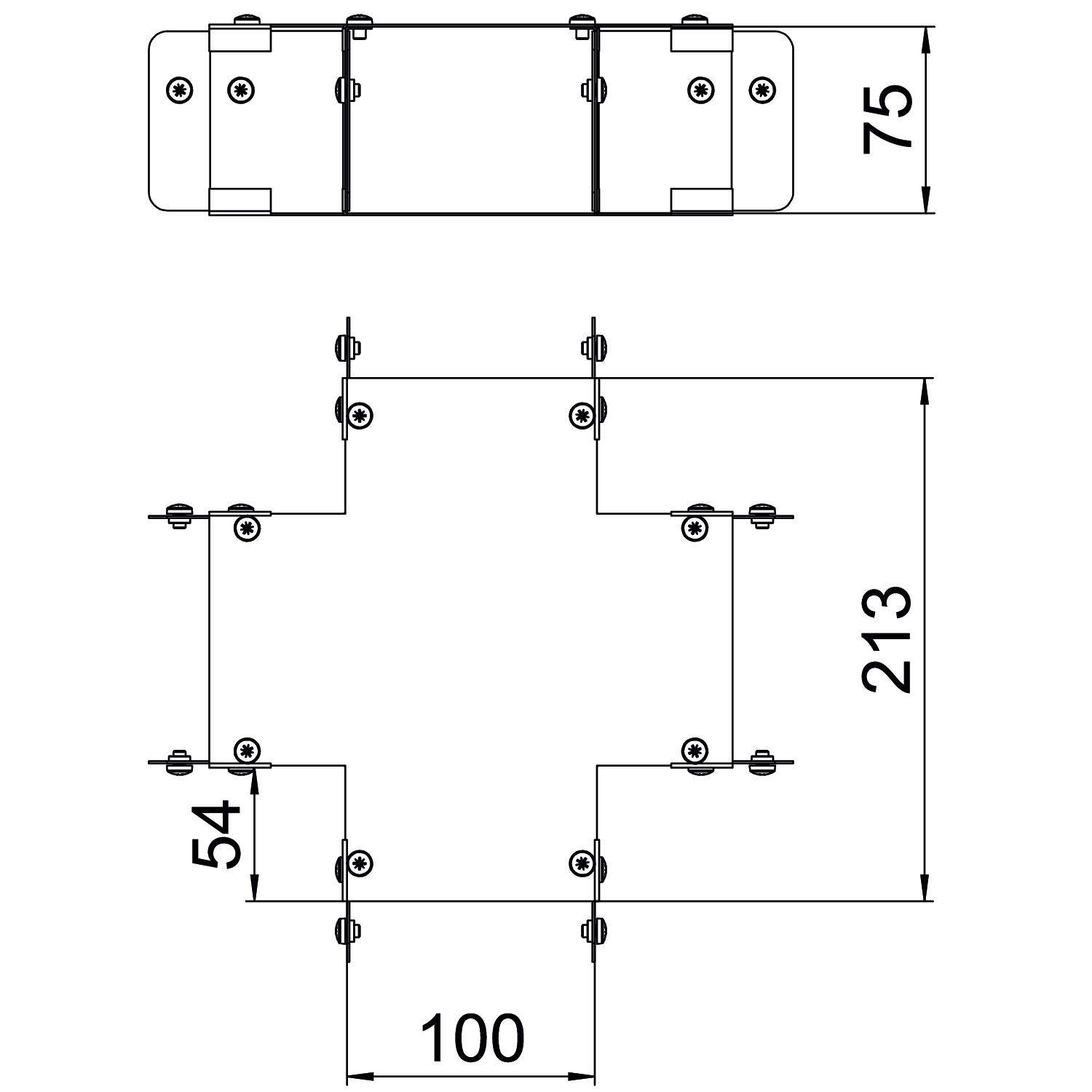 Single Compartment 4 Way Intersection, Non Gusset, Pre-Galvanised Steel to suit Cable Trunking 100mm x 75mm
