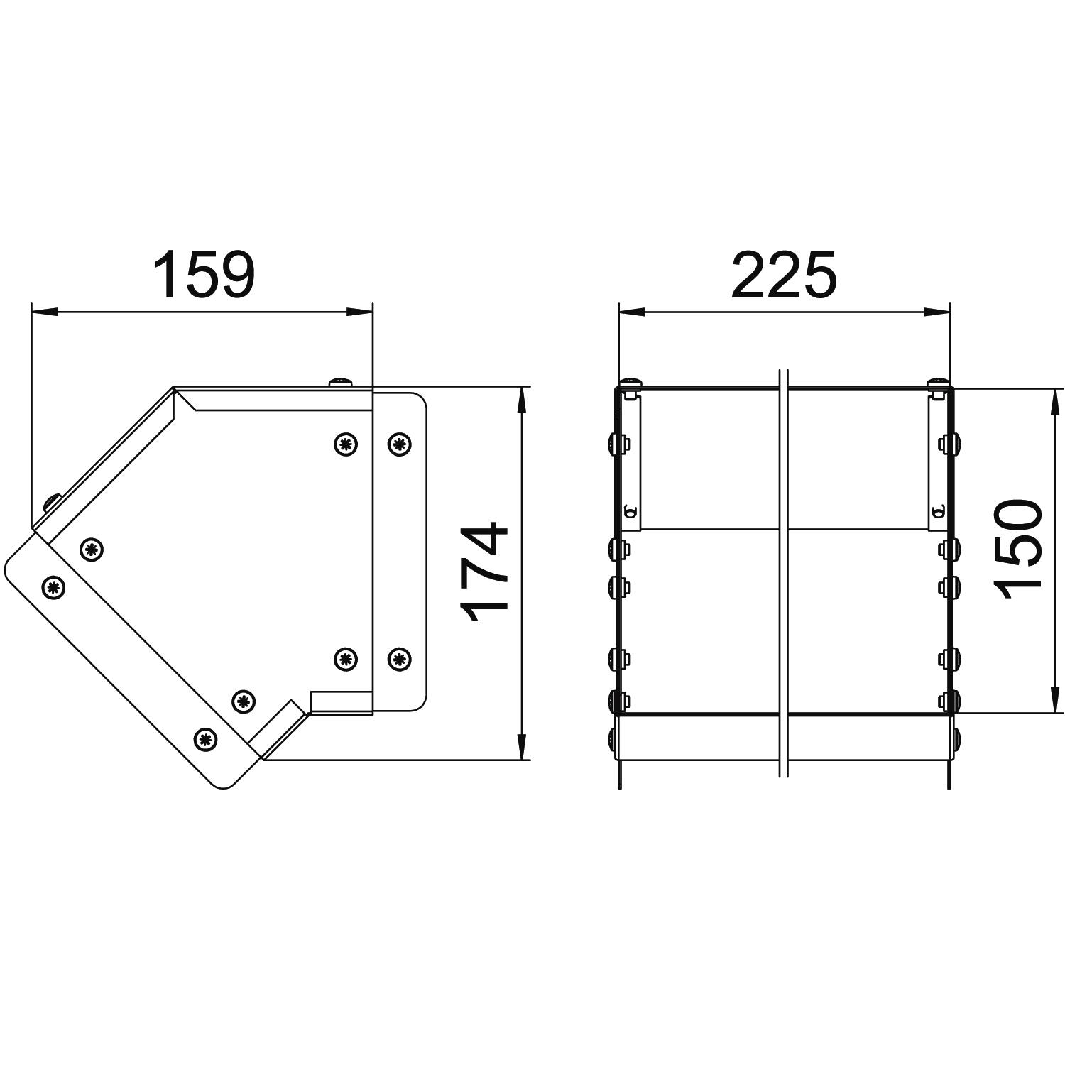 Single Compartment 45 Degree External Cover Bend, Pre-Galvanised Steel to suit Cable Trunking 225mm x 150mm