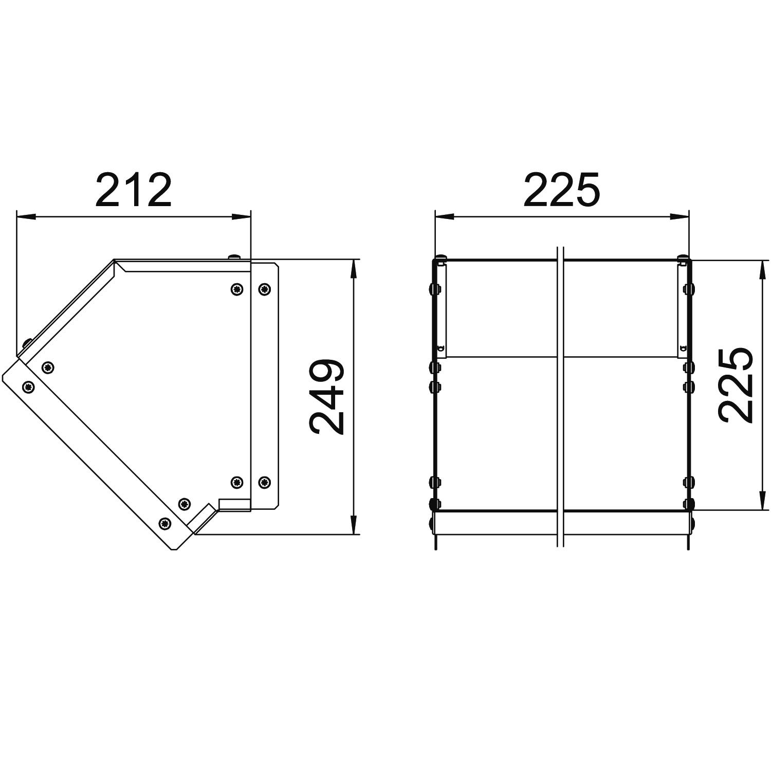 Single Compartment 45 Degree External Cover Bend, Pre-Galvanised Steel to suit Cable Trunking 225mm x 225mm