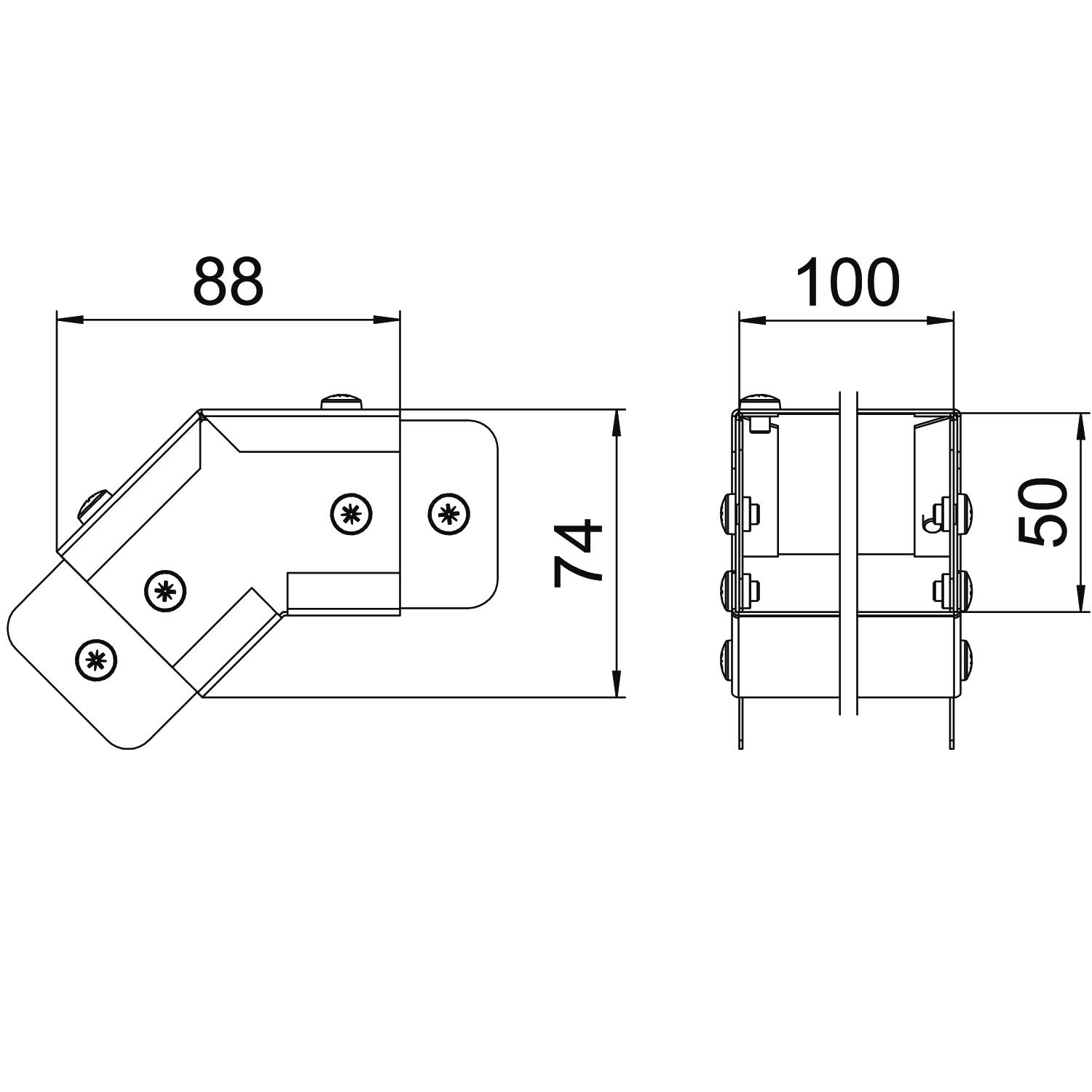 Single Compartment 45 Degree External Cover Bend, Pre-Galvanised Steel to suit Cable Trunking 100mm x 50mm