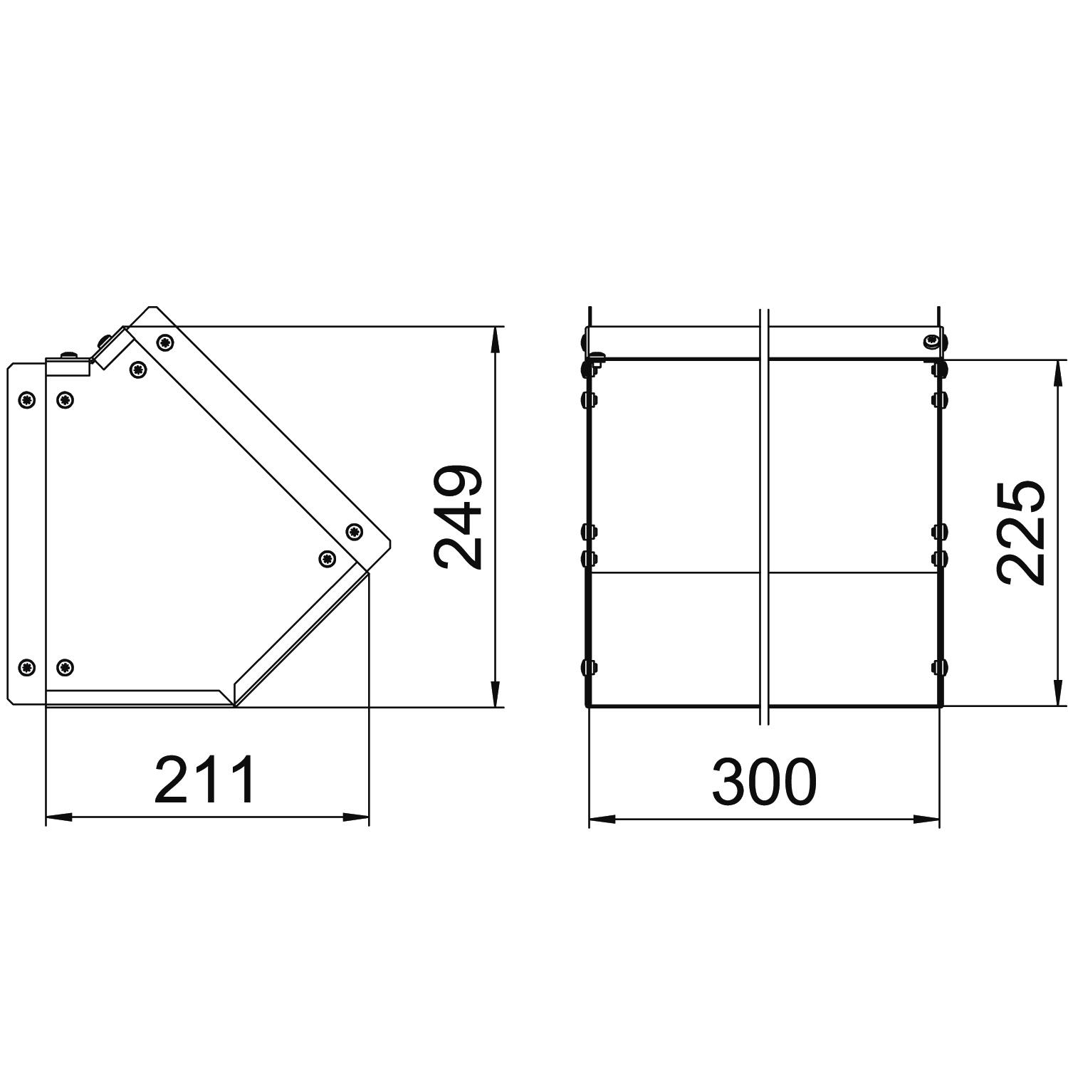 Single Compartment 45 Degree Internal Cover Bend, Pre-Galvanised Steel to suit Cable Trunking 300mm x 225mm