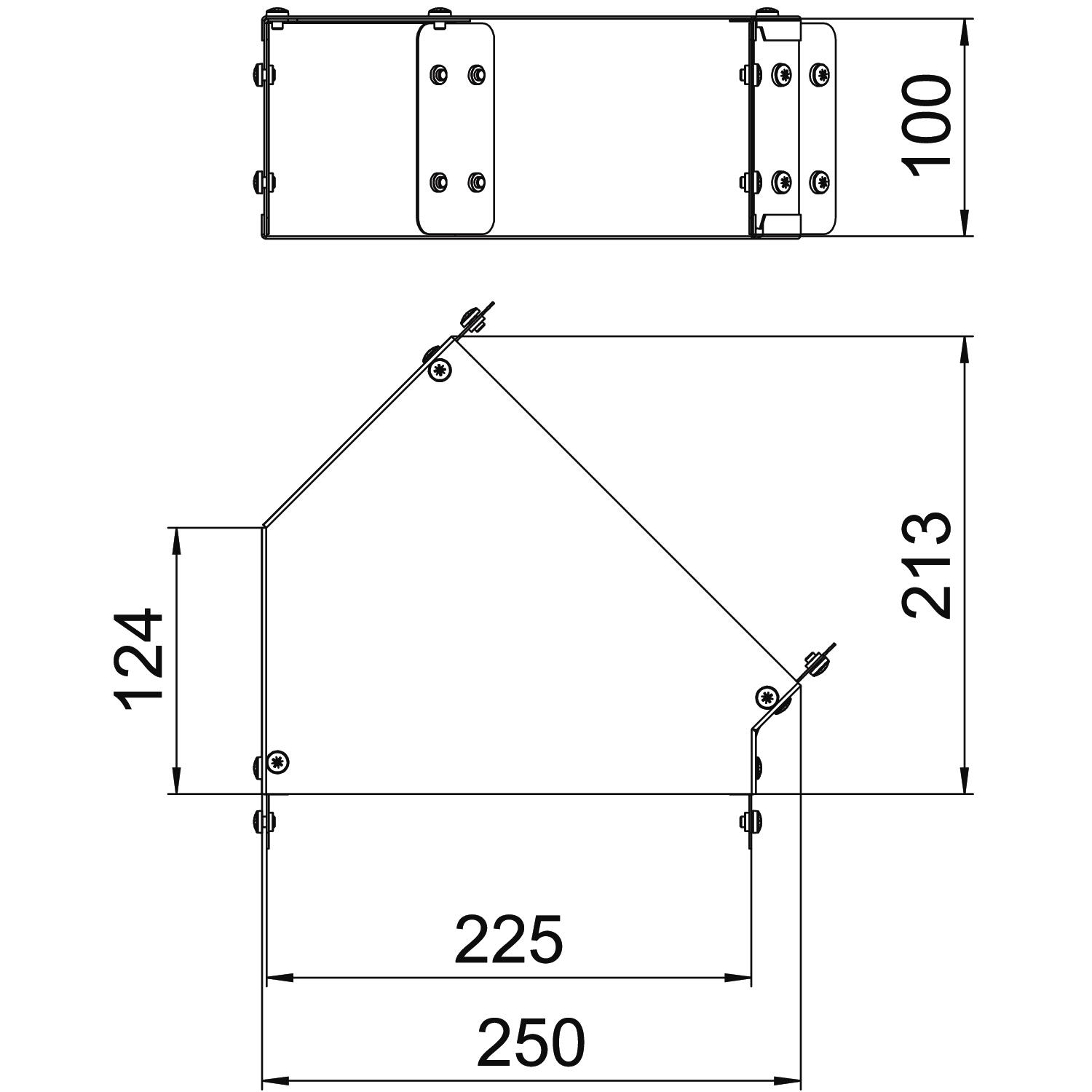 Single Compartment 45 Degree Top Cover Bend, Pre-Galvanised Steel to suit Cable Trunking 225mm x 100mm