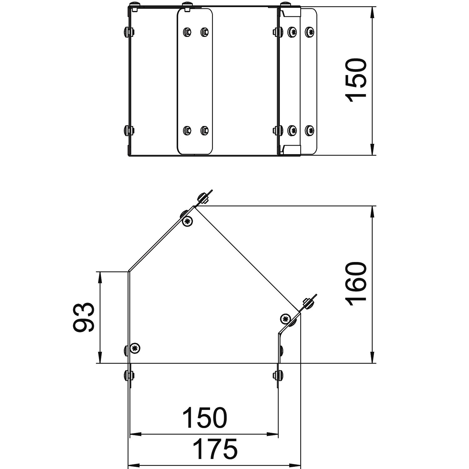 Single Compartment 45 Degree Top Cover Bend, Pre-Galvanised Steel to suit Cable Trunking 150mm x 150mm