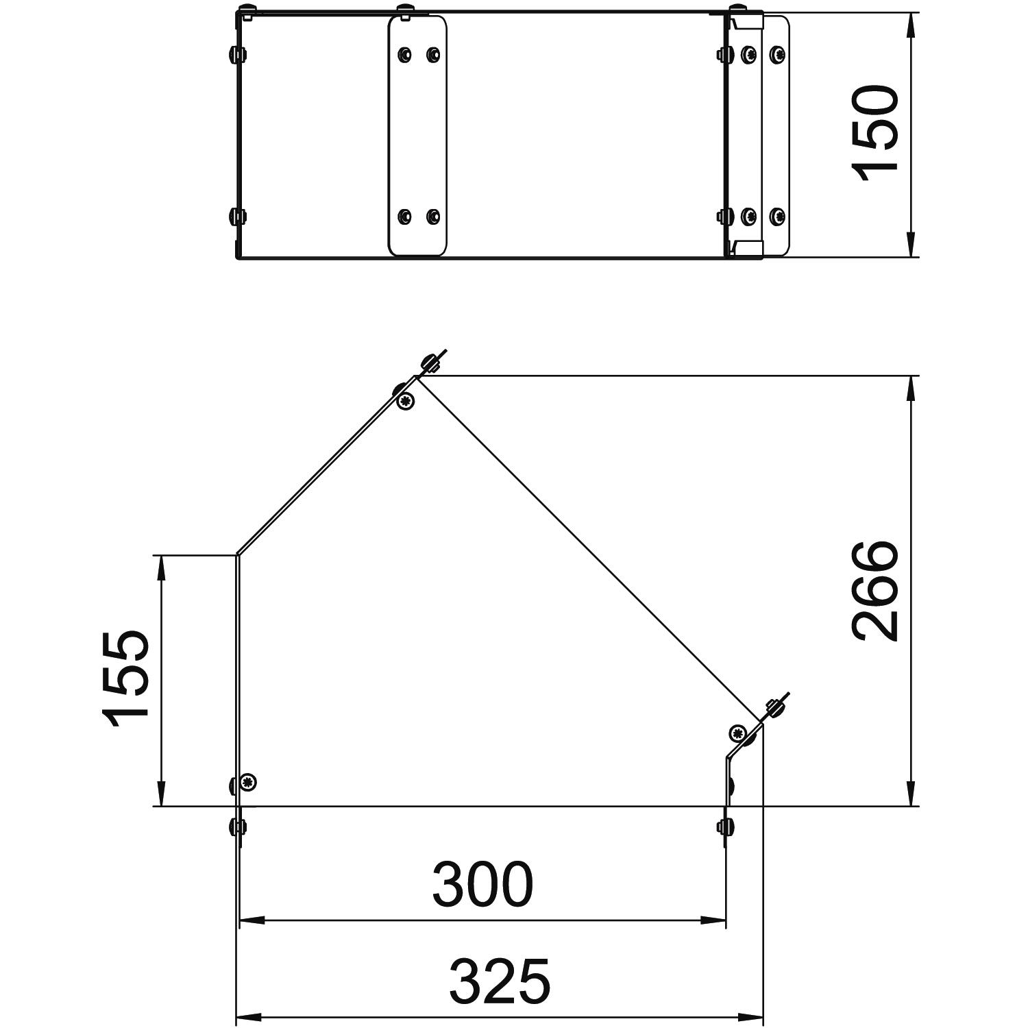 Single Compartment 45 Degree Top Cover Bend, Pre-Galvanised Steel to suit Cable Trunking 300mm x 150mm