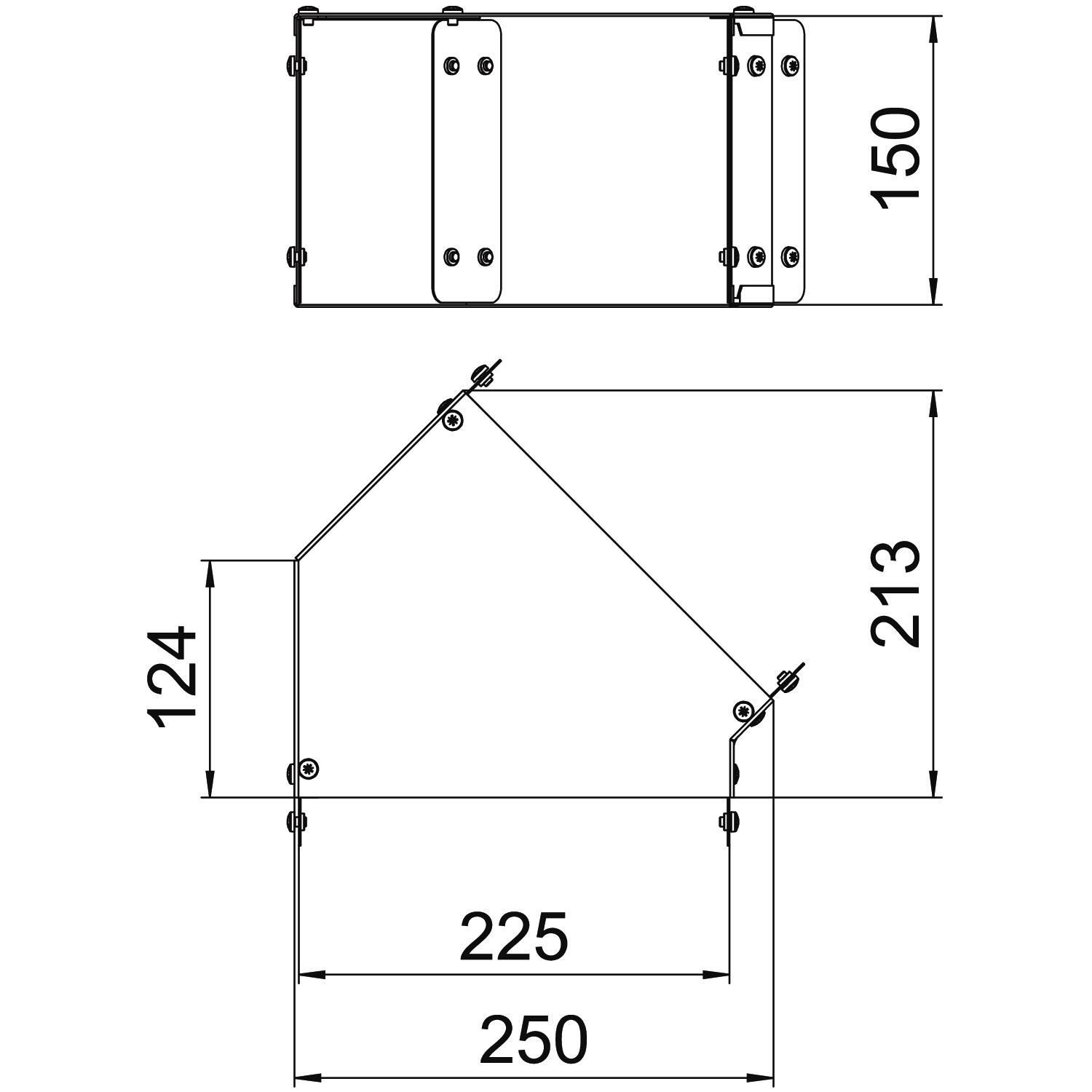 Single Compartment 45 Degree Top Cover Bend, Pre-Galvanised Steel to suit Cable Trunking 225mm x 150mm