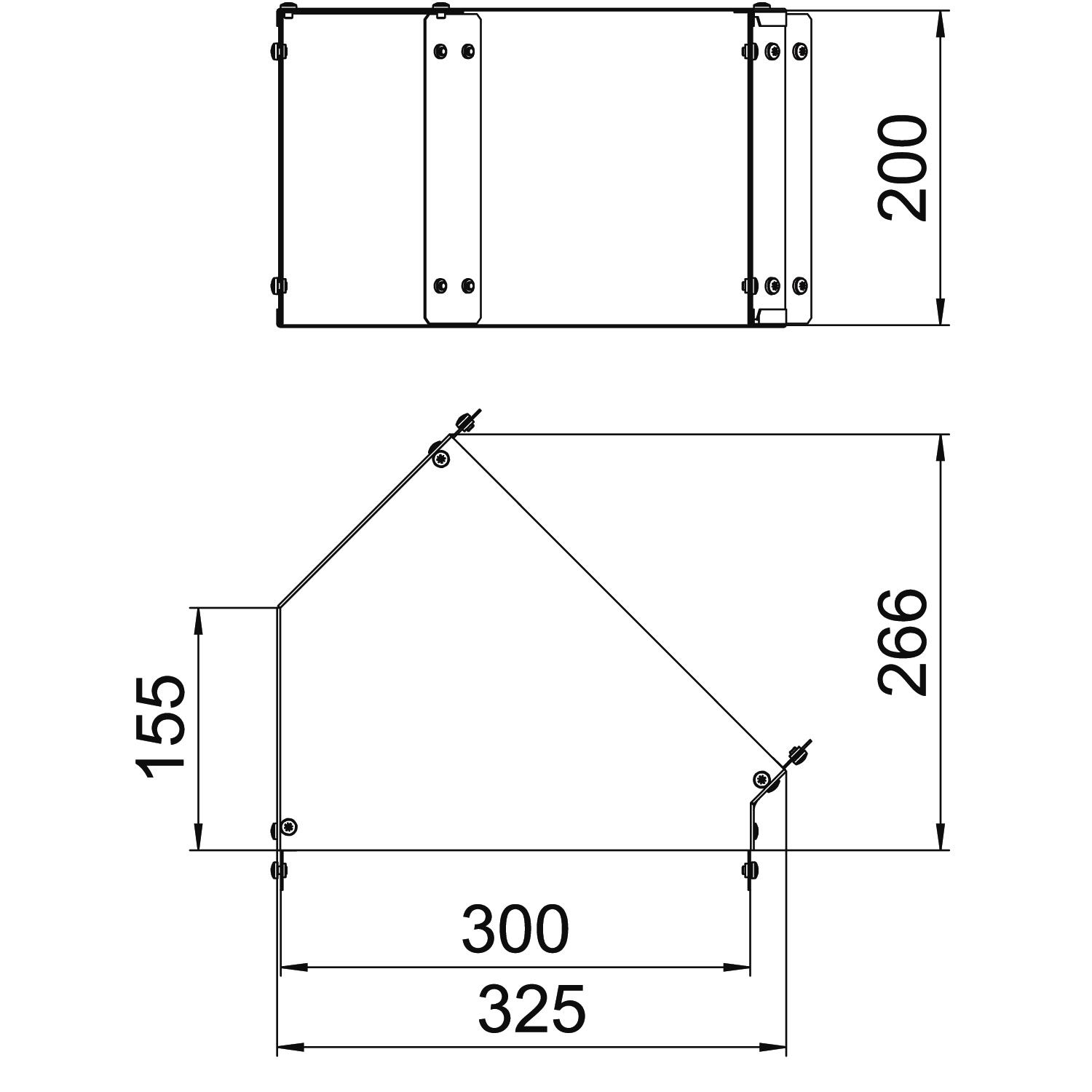 Single Compartment 45 Degree Top Cover Bend, Pre-Galvanised Steel to suit Cable Trunking 300mm x 200mm