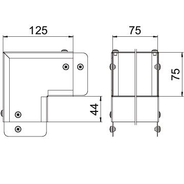 Single Compartment 90 Degree External Cover Bend, Non Gusset, Pre-Galvanised Steel to suit Cable Trunking 75mm x 75mm