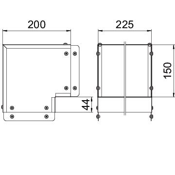 Single Compartment 90 Degree External Cover Bend, Non Gusset, Pre-Galvanised Steel to suit Cable Trunking 225mm x 150mm