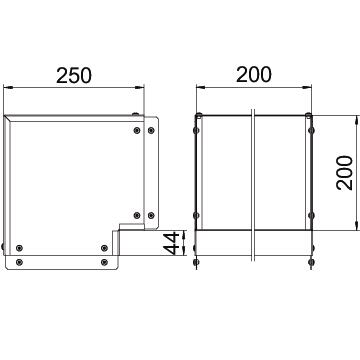 Single Compartment 90 Degree External Cover Bend, Non Gusset, Pre-Galvanised Steel to suit Cable Trunking 200mm x 200mm