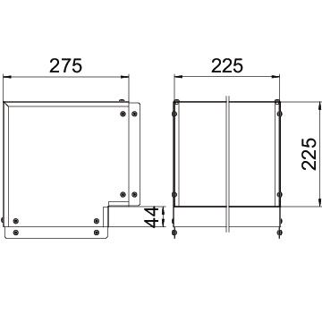 Single Compartment 90 Degree External Cover Bend, Non Gusset, Pre-Galvanised Steel to suit Cable Trunking 225mm x 225mm