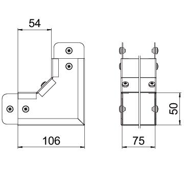 Single Compartment 90 Degree Internal Cover Bend, Pre-Galvanised Steel to suit Cable Trunking 75mm x 50mm