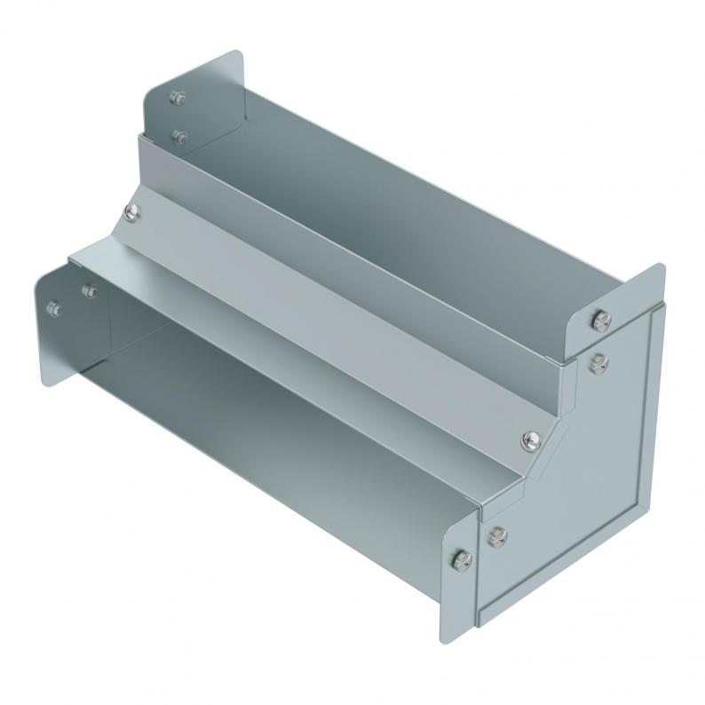 Single Compartment 90 Degree Internal Cover Bend, Pre-Galvanised Steel to suit Cable Trunking 300mm x 75mm