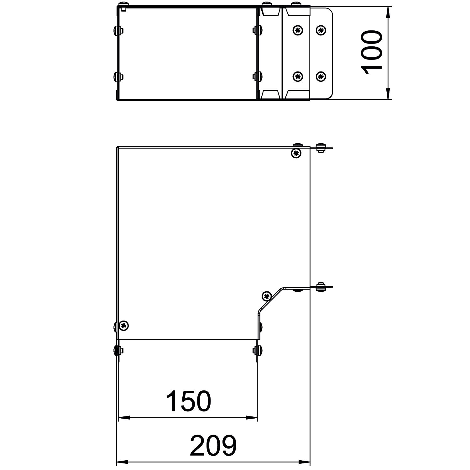 Single Compartment 90 Degree Top Cover Bend, Pre-Galvanised Steel to suit Cable Trunking 150mm x 100mm