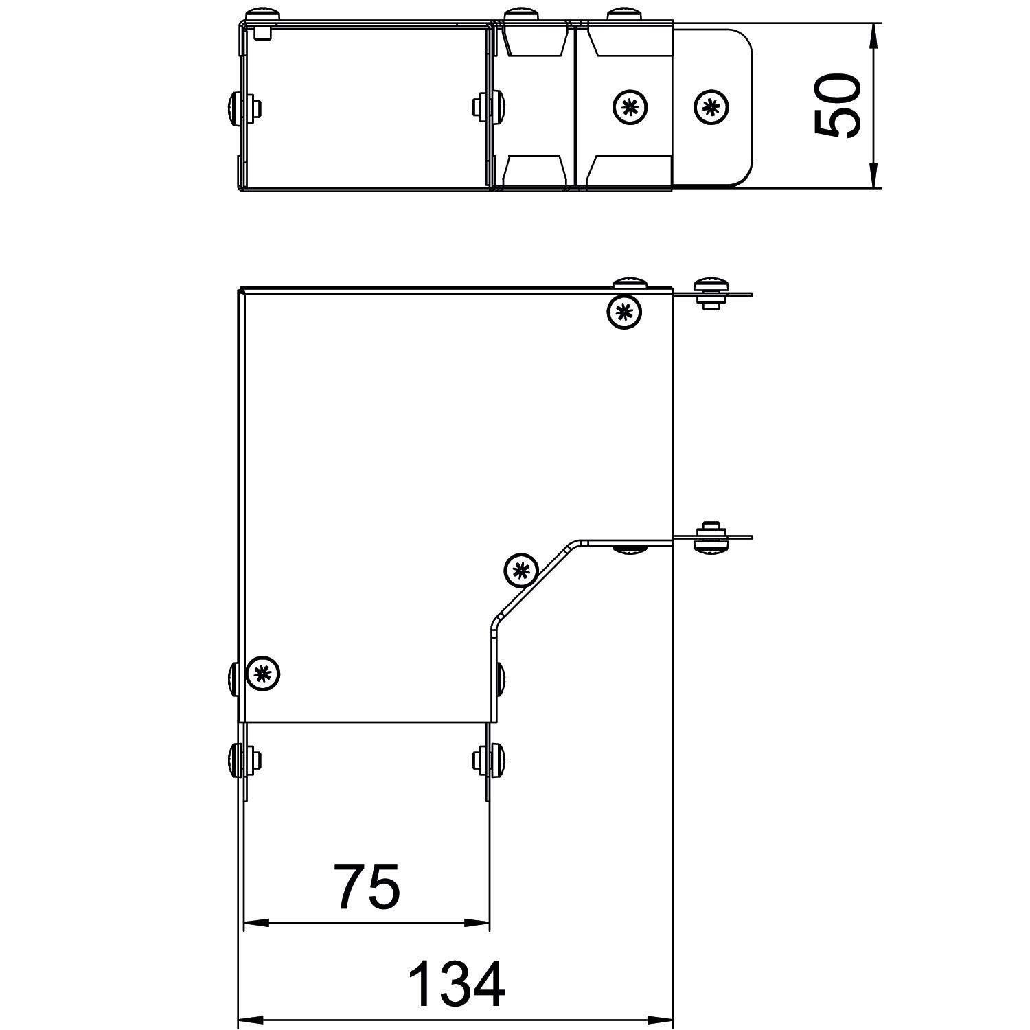 Single Compartment 90 Degree Top Cover Bend, Pre-Galvanised Steel to suit Cable Trunking 75mm x 50mm