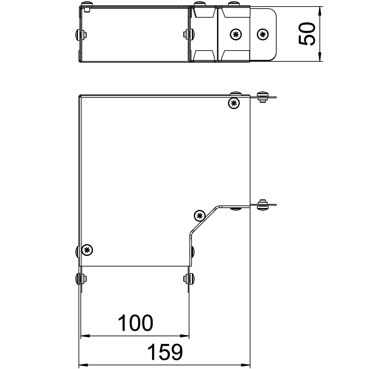 Single Compartment 90 Degree Top Cover Bend, Pre-Galvanised Steel to suit Cable Trunking 100mm x 50mm