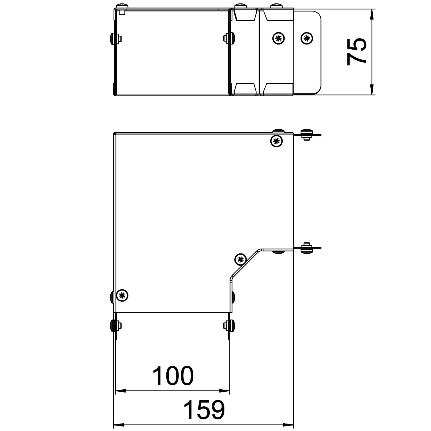Single Compartment 90 Degree Top Cover Bend, Pre-Galvanised Steel to suit Cable Trunking 100mm x 75mm