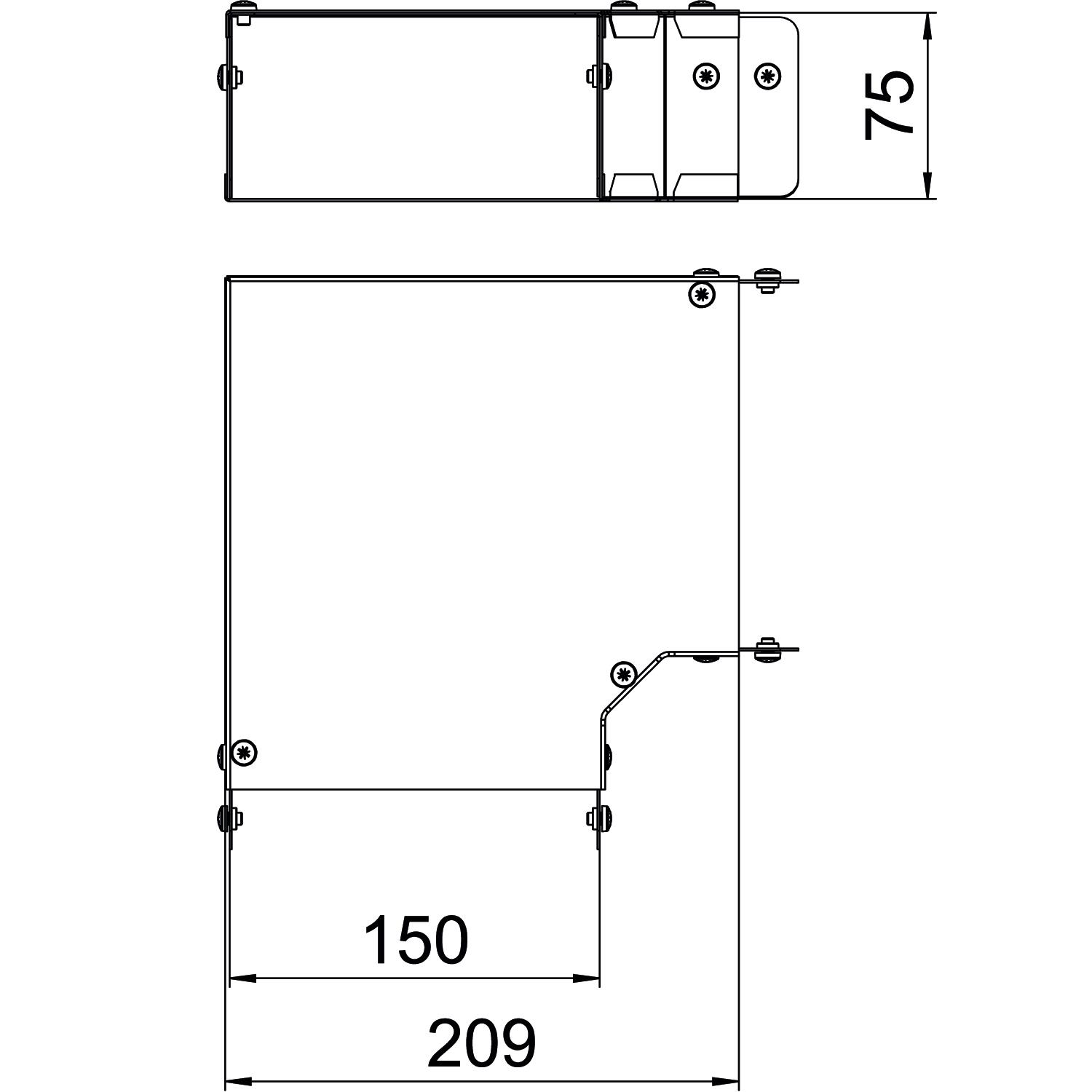 Single Compartment 90 Degree Top Cover Bend, Pre-Galvanised Steel to suit Cable Trunking 150mm x 75mm