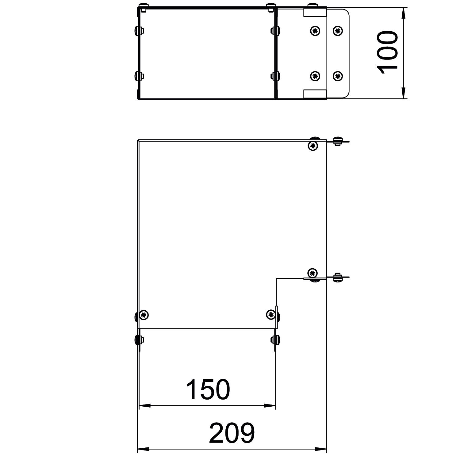Single Compartment 90 Degree Top Cover Bend, Non Gusset, Pre-Galvanised Steel to suit Cable Trunking 150mm x 100mm