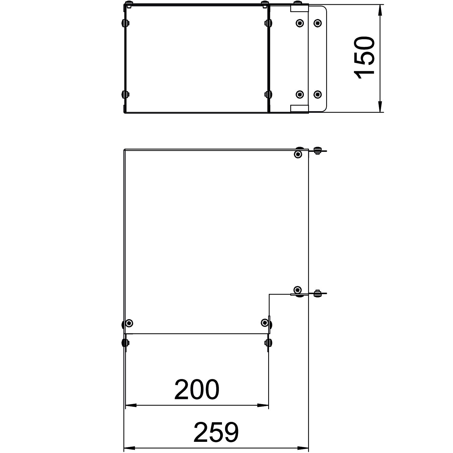 Single Compartment 90 Degree Top Cover Bend, Non Gusset, Pre-Galvanised Steel to suit Cable Trunking 200mm x 150mm