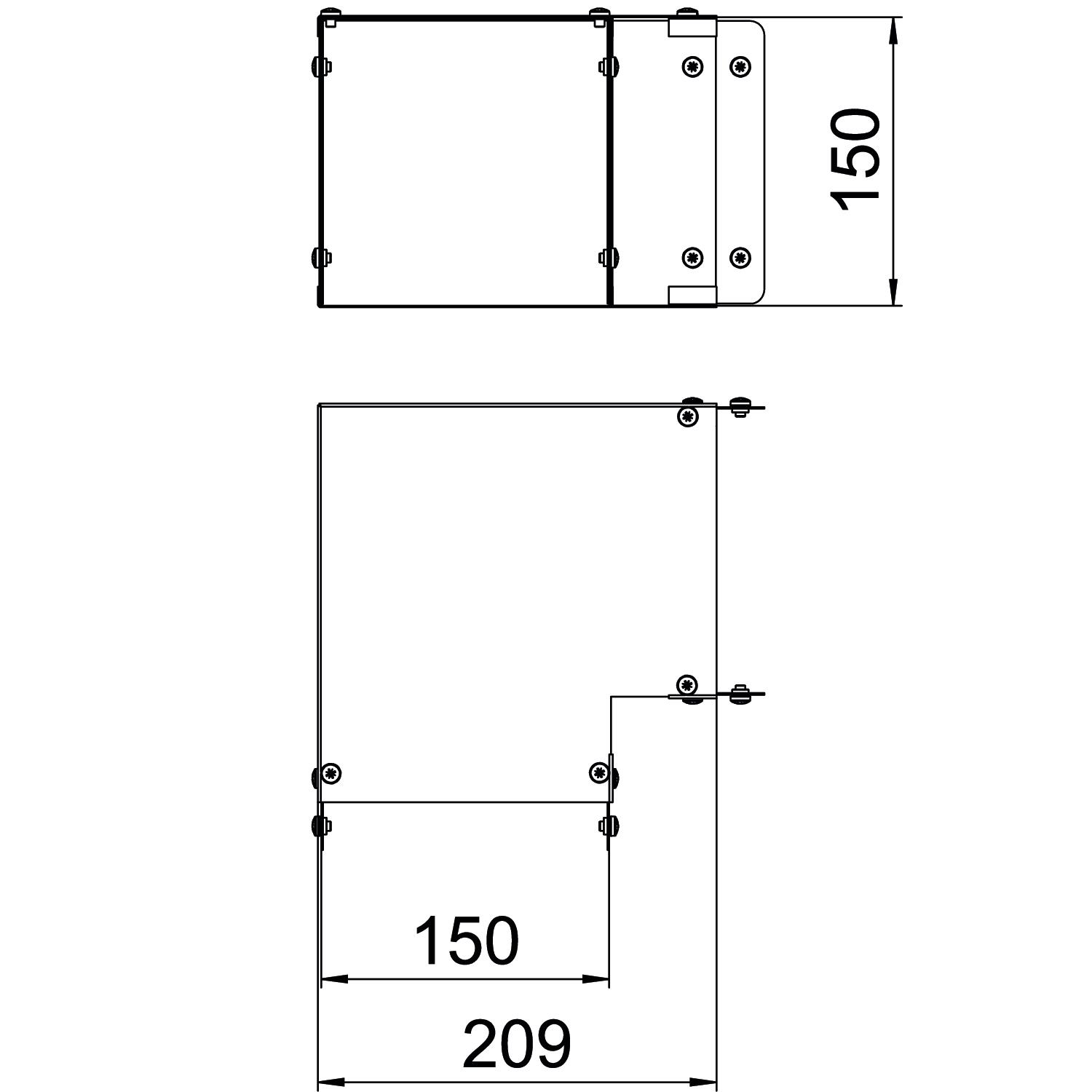 Single Compartment 90 Degree Top Cover Bend, Non Gusset, Pre-Galvanised Steel to suit Cable Trunking 150mm x 150mm