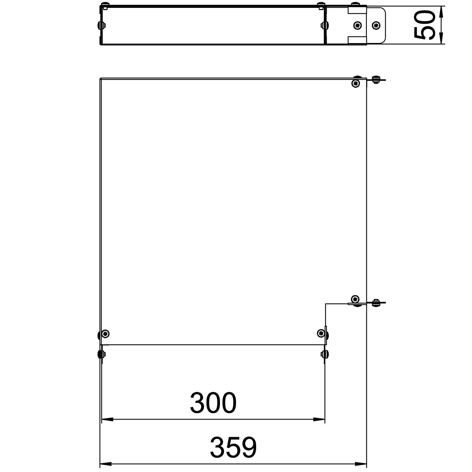 Single Compartment 90 Degree Top Cover Bend, Non Gusset, Pre-Galvanised Steel to suit Cable Trunking 300mm x 50mm