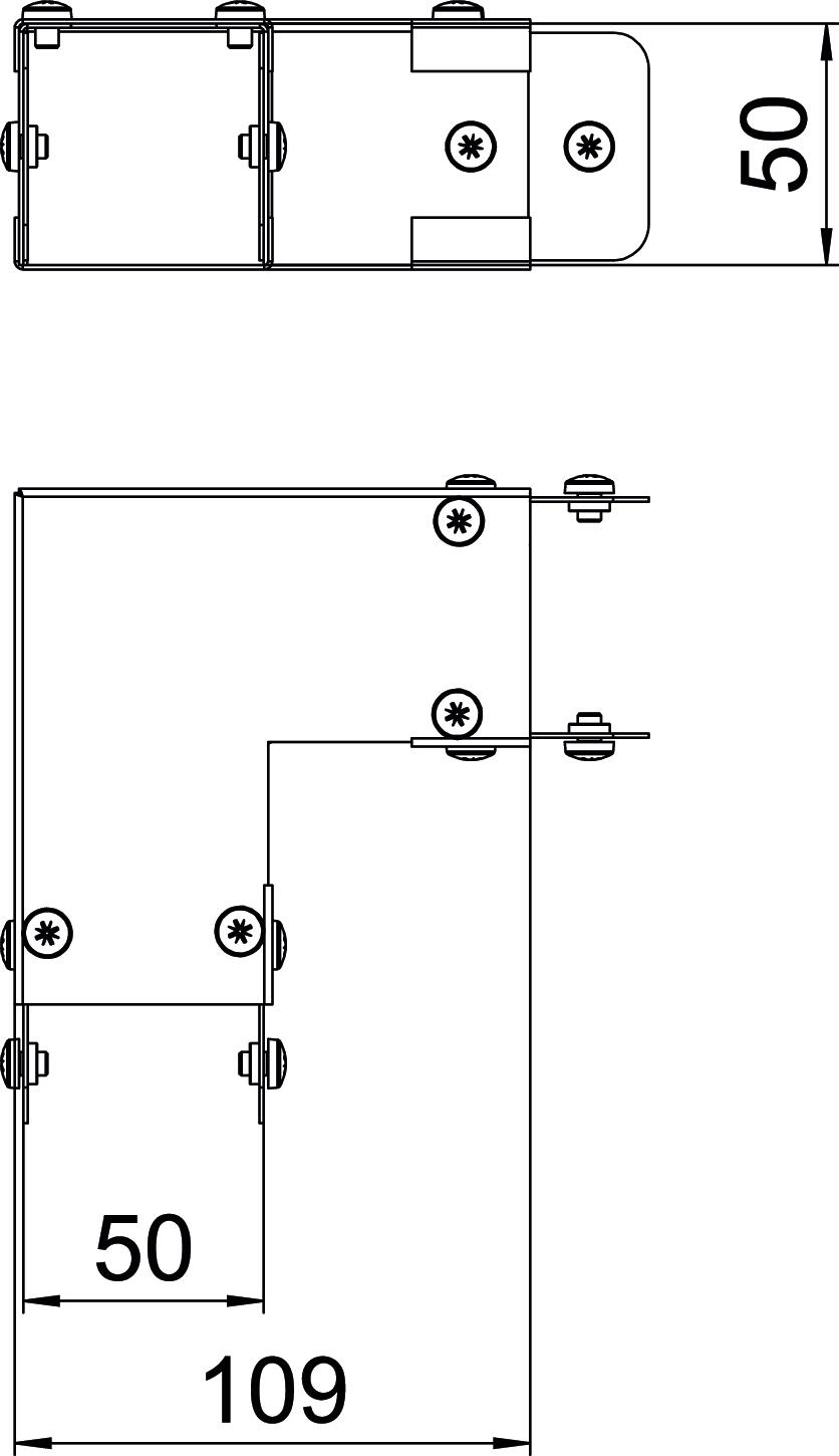 Single Compartment 90 Degree Top Cover Bend, Non Gusset, Pre-Galvanised Steel to suit Cable Trunking 50mm x 50mm