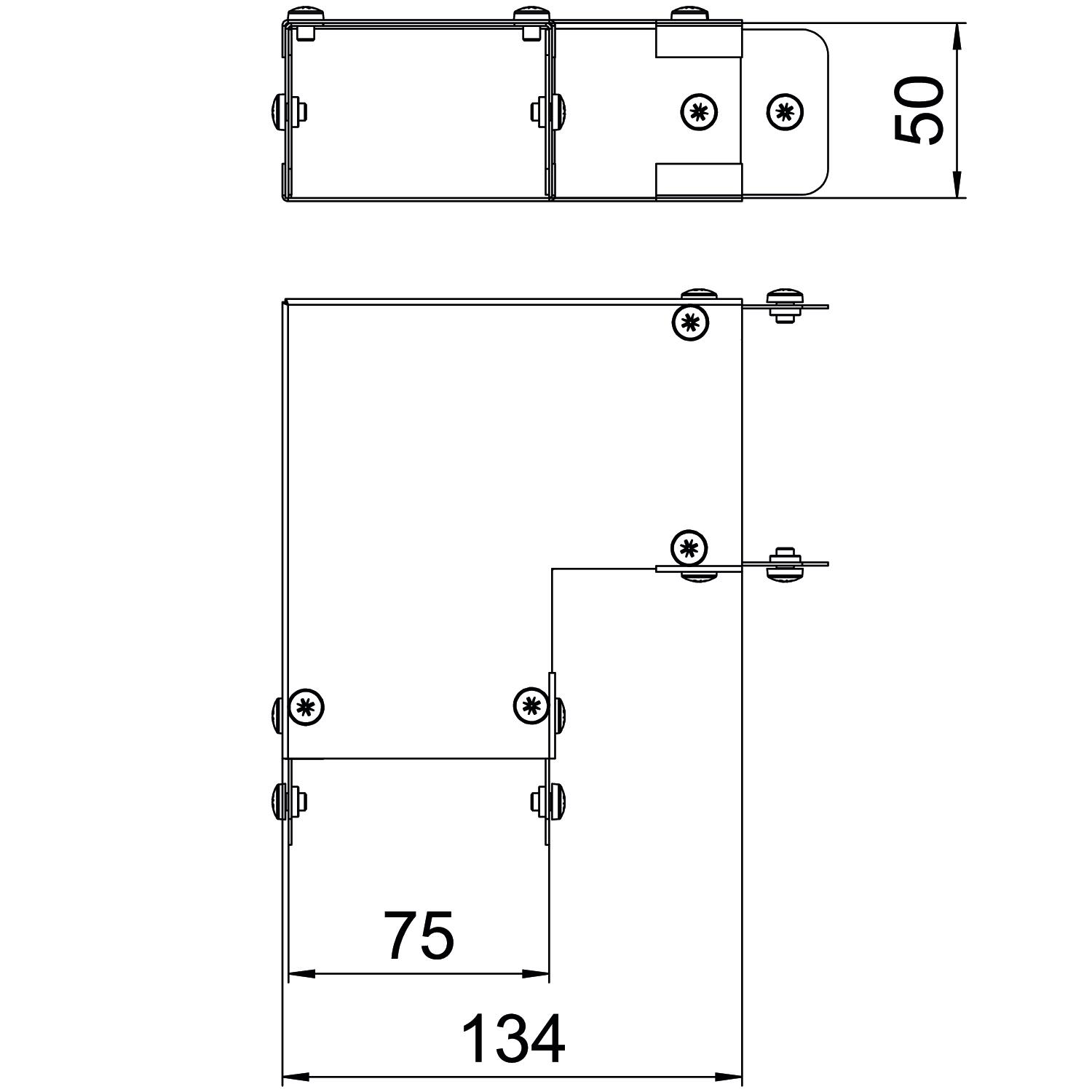 Single Compartment 90 Degree Top Cover Bend, Non Gusset, Pre-Galvanised Steel to suit Cable Trunking 75mm x 50mm