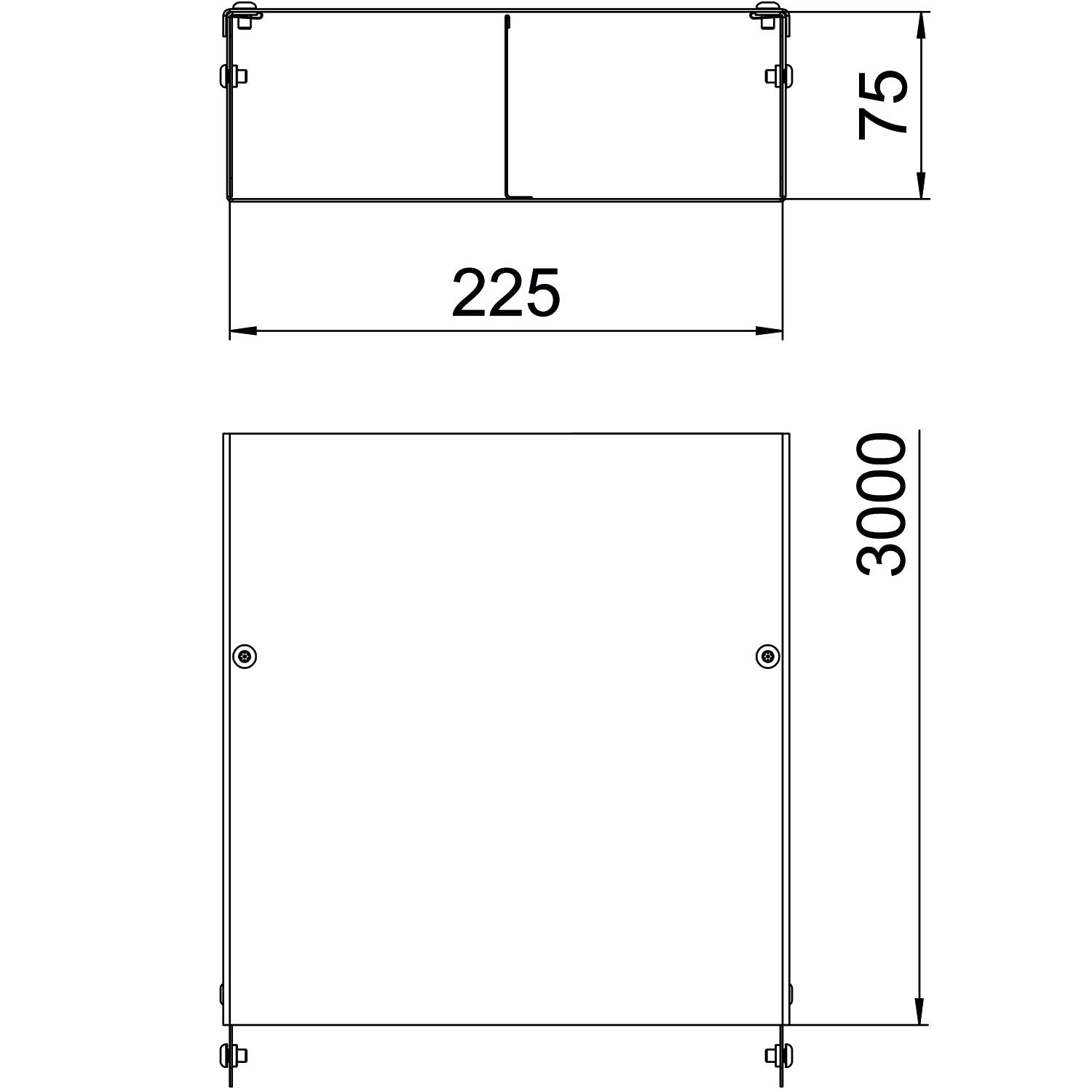 Two Equal Compartment Cable Trunking, 3m, Pre-Galvanised Steel 225mm x 75mm Tamperproof Security