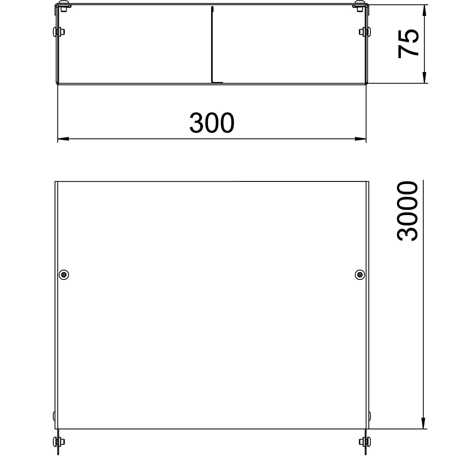 Two Equal Compartment Cable Trunking, 3m, Pre-Galvanised Steel 300mm x 75mm Tamperproof Security