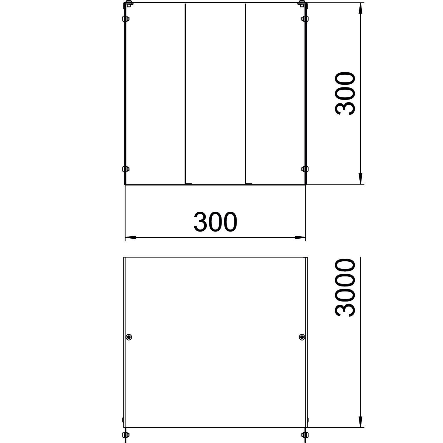 Three Equal Compartment Cable Trunking, 3m, Pre-Galvanised Steel 300mm x 300mm Tamperproof Security