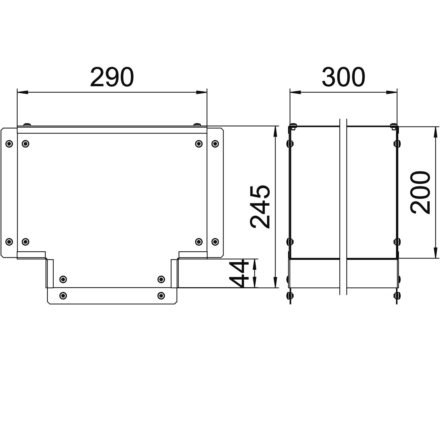 Single Compartment Tee External Cover, Non Gusset, Pre-Galvanised Steel to suit Cable Trunking 300mm x 200mm