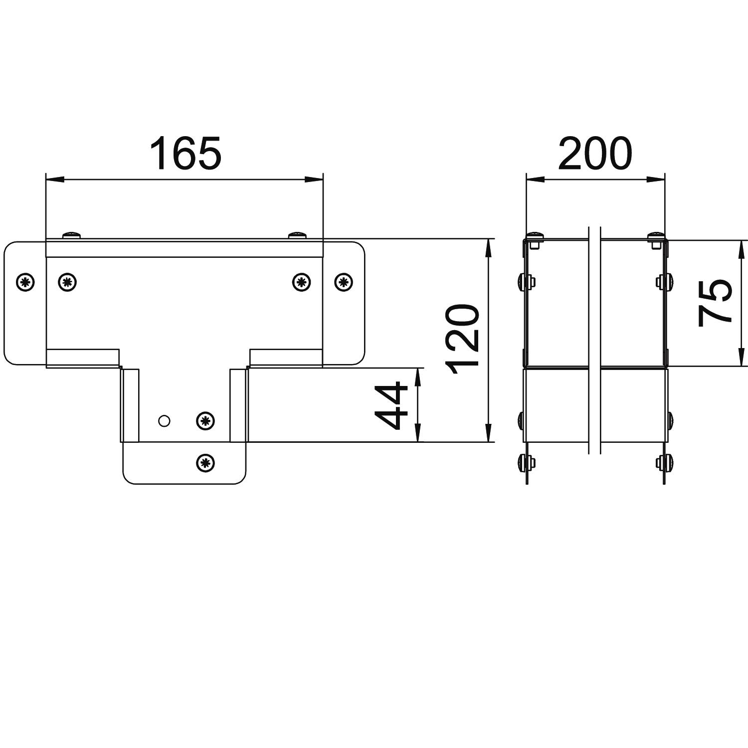 Single Compartment Tee External Cover, Non Gusset, Pre-Galvanised Steel to suit Cable Trunking 200mm x 75mm